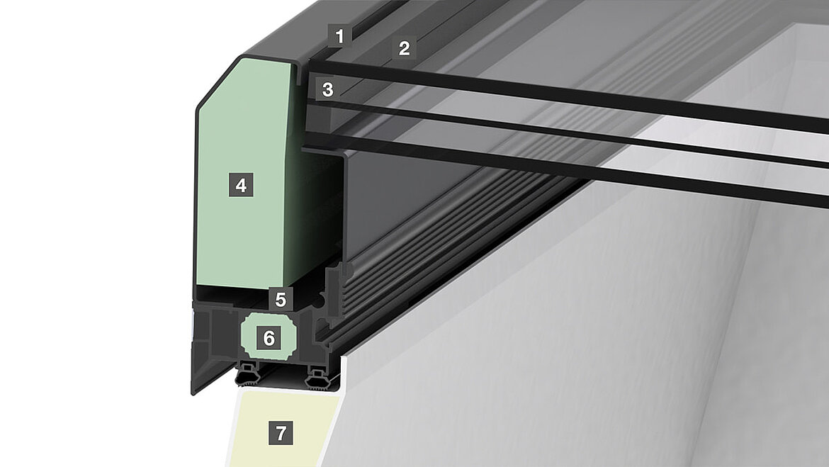 The GRP up stand and the aluminium surrounding frame profile render further safety measures unnecessary on flat roofs. Surface protection in the form of gravel fill is not required.