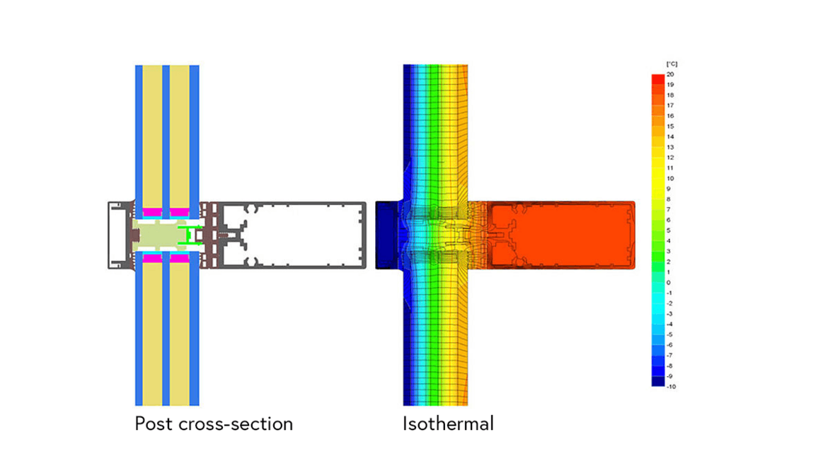 The intelligent use of highly efficient materials limits the minimum surface temperature on the inside of glass constructions, thus preventing condensate and mould formation.