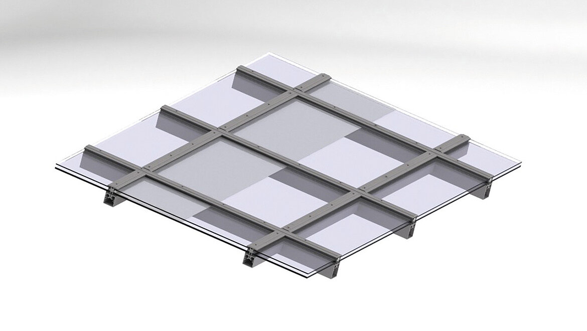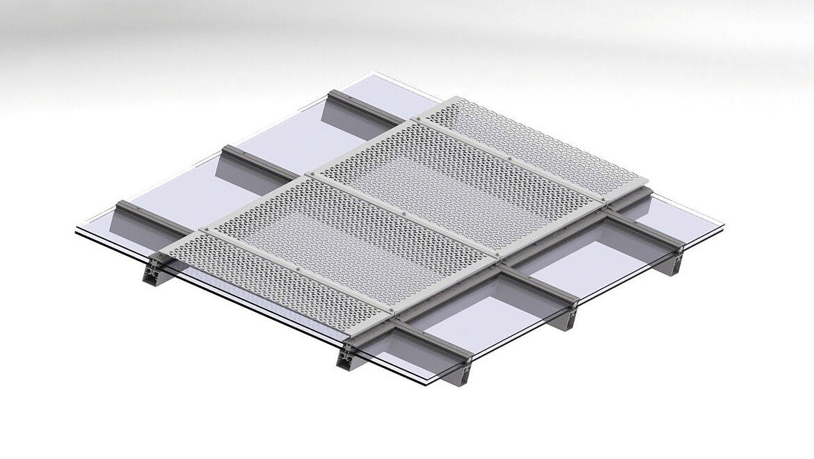 - Visible elements of the supporting structure (aluminium) and roof panels with RAL coatings
