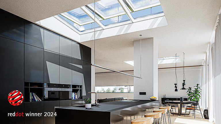 It's another triumph for LAMILUX. For the fifth time now, the skylight specialist has been honoured with the renowned Red Dot Design Award. In the "Product Design" category, the LAMILUX Modular Glass Skylight MS78 emerged as the winner. This award once again emphasises the excellent collaboration of design and functionality that makes LAMILUX skylights stand out.