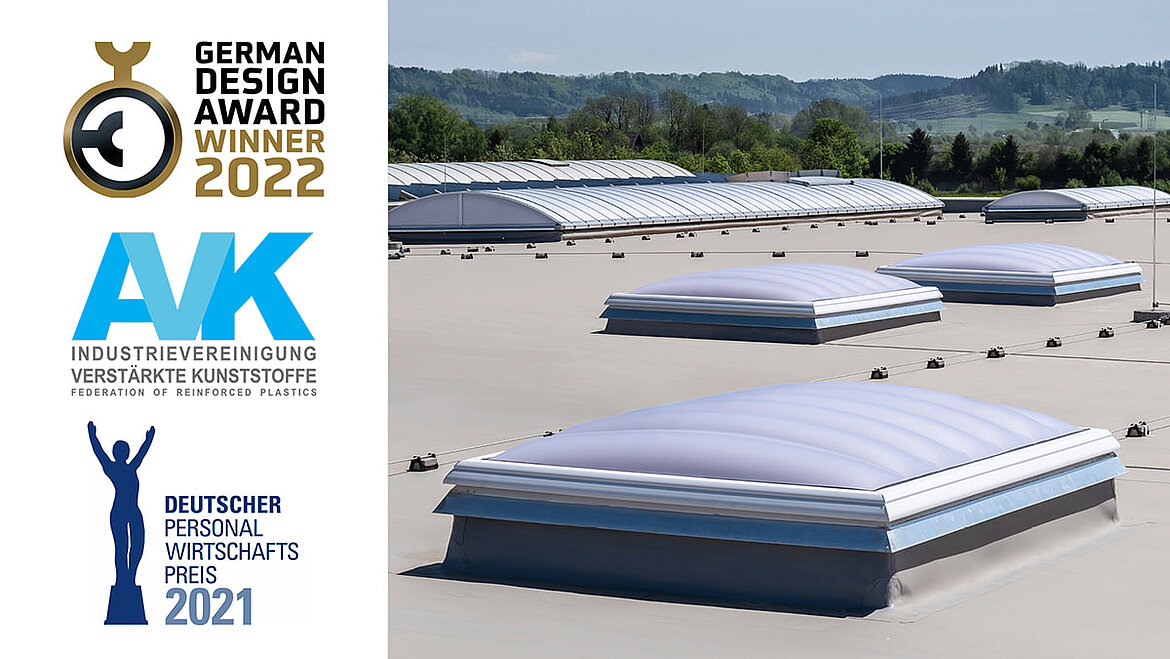 In 2022, LAMILUX achieved the highest turnover and the highest number of employees since its foundation in 1909, with 392 million euros and a workforce of 1,300. Product innovations introduced convinced both customers on the market and juries of numerous renowned awards. The German Design Award-winning innovation in the area of daylight systems: The LAMILUX F100 W skylight dome, which thanks to the wave shape of the dome shell ensures better load transfer and more rigidity without using more material. In the composites sector, LAMILUX presented the world's most UV-resistant GRP cover layer, LAMILUX SUNSATION, which was crowned with three awards: German Innovation Award, AVK Innovation Award and German Design Award. And LAMILUX Heinrich Strunz Holding GmbH also had the pleasure of winning several prizes: In addition to the German Human Resources Award and the Bavaria's Best 50, LAMILUX won the nationwide SchuleWirtschaft Award for its wide-ranging work for the Hochfranken region.