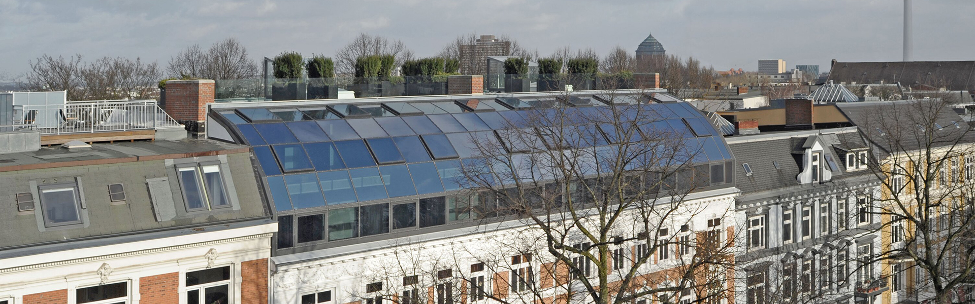 An example project in Hamburg illustrates the design and functional possibilities offered by modern skylights from manufacturers such as LAMILUX. On Rostocker Straße in Hamburg, a listed building required the roof surfaces to appear externally like slate roofing, while the interior was designed to be fully transparent, offering an unobstructed view of the sky and the skyline. “Under such a glass roof, winter blues are hardly an issue – which already answers the question of improved well-being,” Vogelsanger notes.
