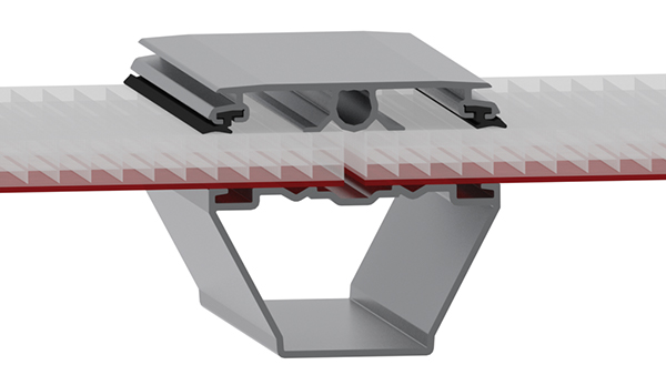 Effect: The Isothermal Load Converter channels the load on the Continuous Rooflight into the substructure. Since this frees the base profile from loads and tensions, there is no need for metal material. This allows high-quality composite with excellent thermal insulation values to be used for the base profile.