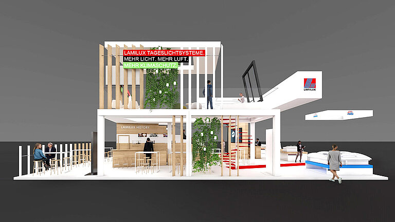 At BAU 2023, the LAMILUX Heinrich Strunz Group will be presenting its new products on a two-storey stand of around 350 m² under the motto "More light. More air. More climate protection.", the comprehensive product portfolio of the daylight system manufacturer LAMILUX and its subsidiaries roda Licht- und Lufttechnik GmbH and MIROTEC Glas- und Metallbau GmbH.